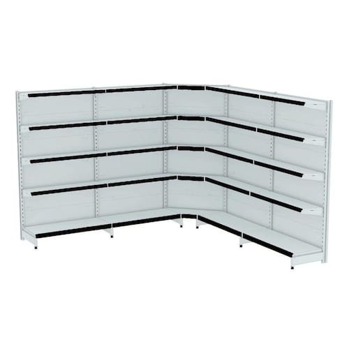 A fileira de Gôndolas deve ser iniciada com a Gôndola Inicial que possui 2 colunas. A Gôndola Continuação possui 1 coluna, utilizada para dar continuidade à fileira e não pode ser montada individualmente.