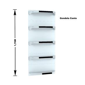 GONDOLA PAREDE 170 FIT AMAPÁ PARA VÃO DE ATÉ 4 METROS MAIS UM CANTO 40/30 BRANCO 25 BANDEJAS PORTA ETIQUETA PRETO