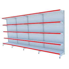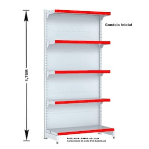 GÔNDOLA PAREDE 170 FIT AMAPÁ PARA VÃO DE ATÉ 4 METROS 40/30 BRANCO 20 BANDEJAS PORTA ETIQUETA VERMELHO