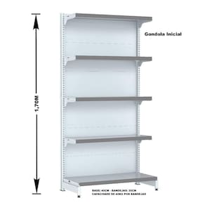 A fileira de Gôndolas deve ser iniciada com a Gôndola Inicial que possui 2 colunas. A Gôndola Continuação possui 1 coluna, utilizada para dar continuidade à fileira e não pode ser montada individualmente.