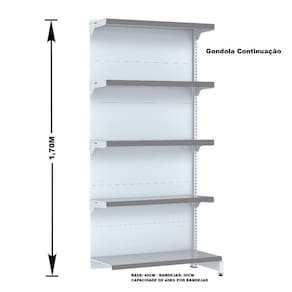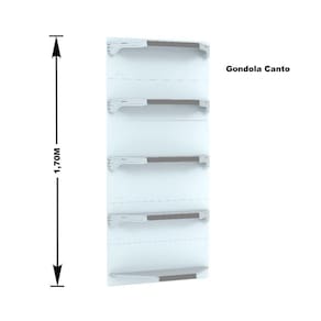 GONDOLA PAREDE 170 FIT AMAPÁ PARA VÃO DE ATÉ 5 METROS MAIS UM CANTO 40/30 BRANCO 30 BANDEJAS PORTA ETIQUETA CINZA