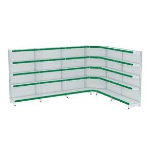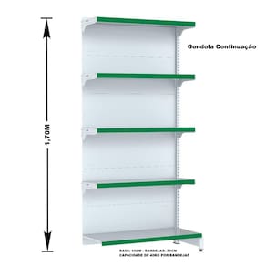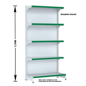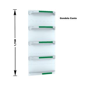 GONDOLA PAREDE 170 FIT AMAPÁ PARA VÃO DE ATÉ 5 METROS MAIS UM CANTO 40/30 BRANCO 30 BANDEJAS PORTA ETIQUETA VERDE