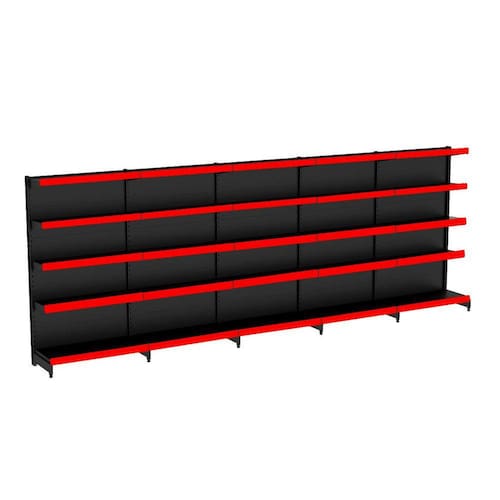 GÔNDOLA PAREDE 170 FIT AMAPÁ PARA VÃO DE ATÉ 5 METROS 40/30 BRANCO 25 BANDEJAS PORTA ETIQUETA VERMELHO