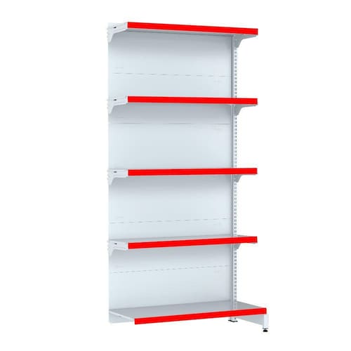 GÔNDOLA PAREDE 170 CONTINUAÇÃO FIT AMAPÁ 40/30 COR BRANCO 5 BANDEJAS PORTA ETIQUETA VERMELHO