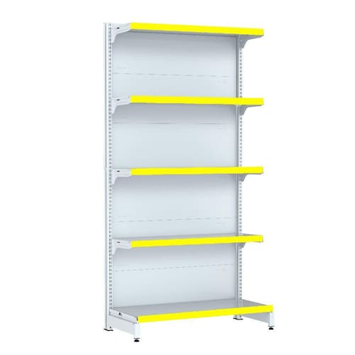 GÔNDOLA PAREDE 170 INICIAL FIT AMAPÁ 40/30 COR BRANCO 5 BANDEJAS PORTA ETIQUETA AMARELO