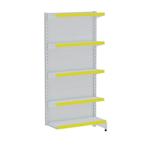 GÔNDOLA PAREDE 196 CONTINUAÇÃO AMAPÁ LINHA PREMIUM FLEX 60 EXTRA FORTE 5 BANDEJAS 1X 40 CM 4X 35 CM COR BRANCO PORTA ETIQUETA (FAIXA) AMARELO