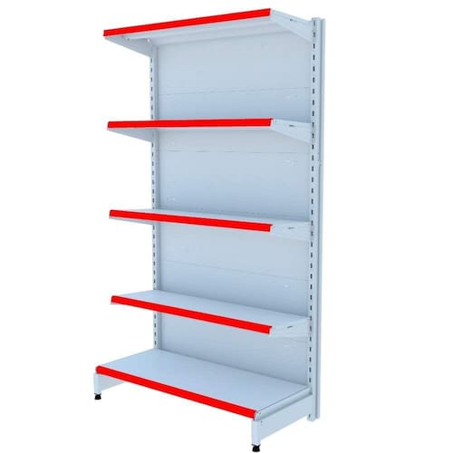 GÔNDOLA PAREDE 196 INICIAL AMAPÁ LINHA PREMIUM FLEX 60 EXTRA FORTE 5 BANDEJAS 1X 40 CM 4X 35 CM COR BRANCO PORTA ETIQUETA (FAIXA) VERMELHO