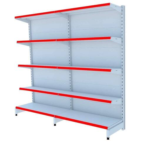 ONDOLA PAREDE 196 AMAPÁ FLEX 60 EXTRA-FORTE KIT 2 METROS 5 BANDEJAS 1X40 CM +4X 35 CM BRANCO PORTA ETIQUETA (FAIXA) VERMELHO