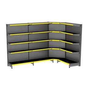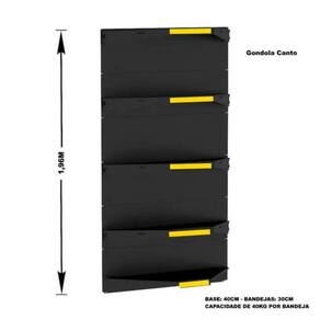 GONDOLA PAREDE 196 AMAPÁ FLEX KIT 3 METROS COM 1 CANTO 40/30 PRETO PORTA ETIQUETA AMARELO