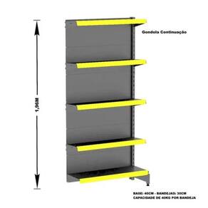 A Gôndola Premium Flex 40 Parede é ideal para supermercados, mercearias, lojas de utilidades, materiais de construção, agropecuárias e outros. Prática e fácil de montar, com sistema de encaixe sem utilização de parafusos, possui bandejas reguláveis a cada 4,5cm, pés com regulagem de altura, colunas dupladas e tratamento especial da superfície.