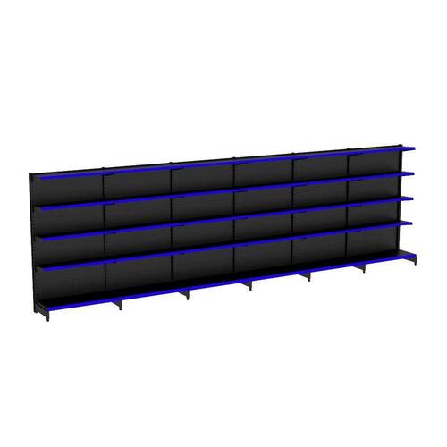 GONDOLA PAREDE 196 AMAPÁ FLEX KIT 6 METROS 40/30 PRETO PORTA ETIQUETA AZUL