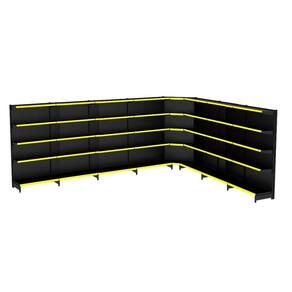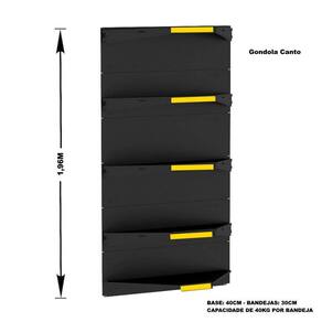 GONDOLA PAREDE 196 AMAPÁ FLEX KIT 7 METROS COM 1 CANTO 40/30 PRETO PORTA ETIQUETA AMARELO
