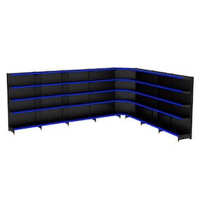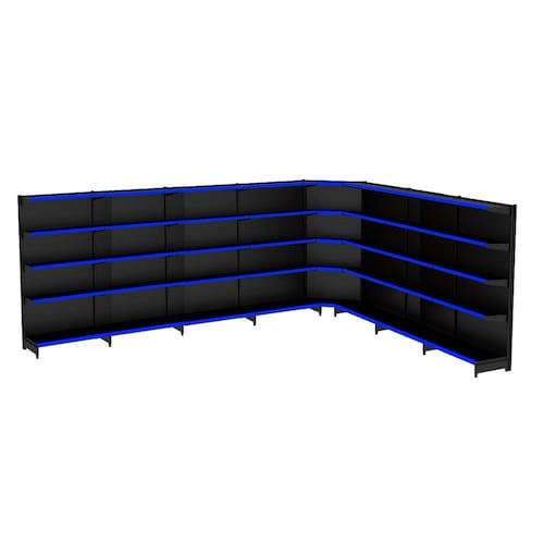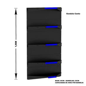 GONDOLA PAREDE 196 AMAPÁ FLEX KIT 7 METROS COM 1 CANTO 40/30 PRETO PORTA ETIQUETA AZUL