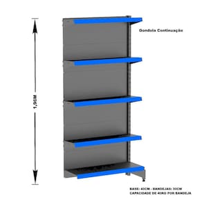 A Gôndola Premium Flex 40 Parede é ideal para supermercados, mercearias, lojas de utilidades, materiais de construção, agropecuárias e outros. Prática e fácil de montar, com sistema de encaixe sem utilização de parafusos, possui bandejas reguláveis a cada 4,5 cm, pés com regulagem de altura, colunas dupladas e tratamento especial da superfície.