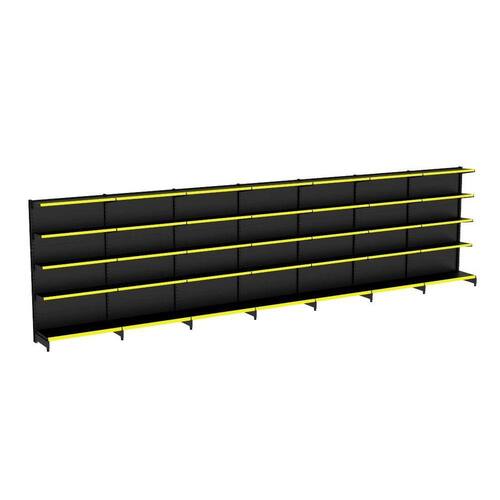 GONDOLA PAREDE 196 AMAPÁ FLEX KIT 7 METROS 40/30 PRETO PORTA ETIQUETA AMARELO