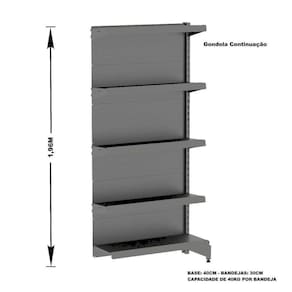 Prática e fácil de montar, com sistema de encaixe sem utilização de parafusos, possui bandejas reguláveis a cada 4,5 cm, pés com regulagem de altura, colunas dupladas e tratamento especial da superfície.