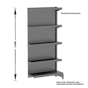 A Gôndola Premium Flex 40 Parede é ideal para supermercados, mercearias, lojas de utilidades, materiais de construção, agropecuárias e outros. Prática e fácil de montar, com sistema de encaixe sem utilização de parafusos, possui bandejas reguláveis a cada 4,5 cm, pés com regulagem de altura, colunas dupladas e tratamento especial da superfície.