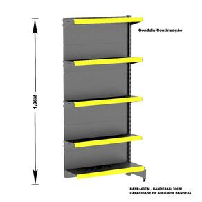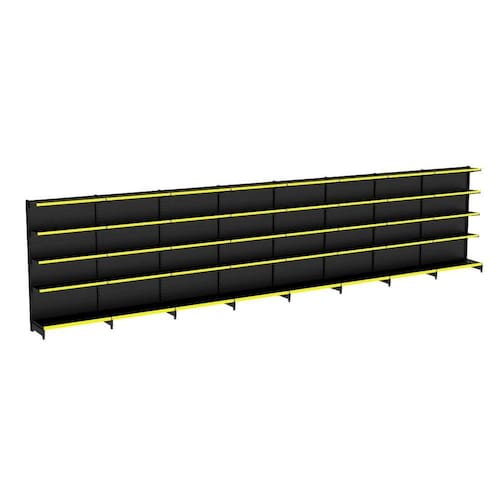 GONDOLA PAREDE 196 AMAPÁ FLEX KIT 8 METROS 40/30 PRETO PORTA ETIQUETA AMARELO