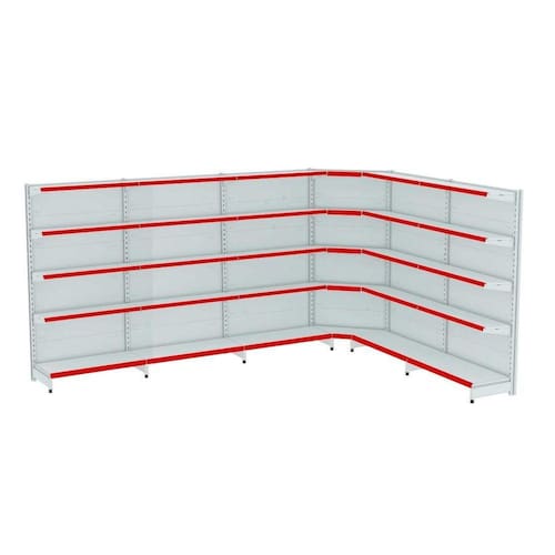 GONDOLA PAREDE 202 AMAPÁ FIT KIT 5 METROS COM 1 CANTO 40/30 BRANCO PORTA ETIQUETA VERMELHO