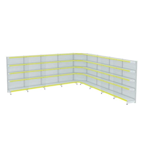 GONDOLA PAREDE 202 AMAPÁ FIT KIT 8 METROS COM 1 CANTO 40/30 BRANCO PORTA ETIQUETA AMARELO