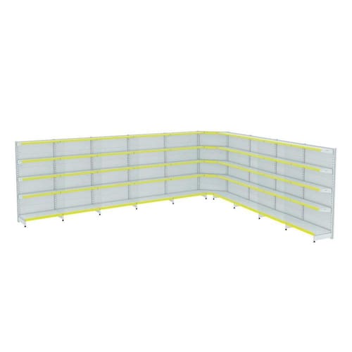 GONDOLA PAREDE 202 AMAPÁ FIT KIT 9 METROS COM 1 CANTO 40/30 BRANCO PORTA ETIQUETA AMARELO
