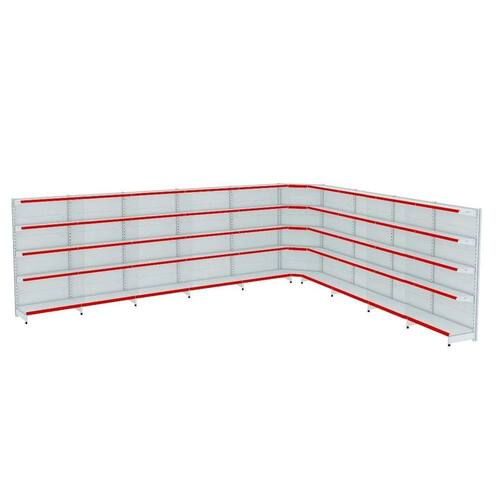 GONDOLA PAREDE 202 AMAPÁ FIT KIT 9 METROS COM 1 CANTO 40/30 BRANCO PORTA ETIQUETA VERMELHO