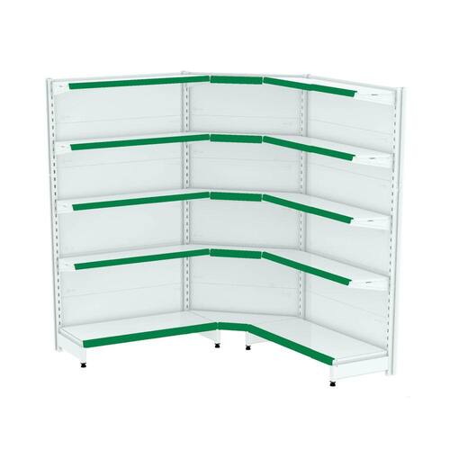 GONDOLA PAREDE 202 FIT AMAPÁ PARA VÃO DE ATÉ 2 METROS MAIS UM CANTO 40/30 BRANCO 15 BANDEJAS PORTA ETIQUETA VERDE
