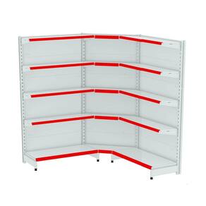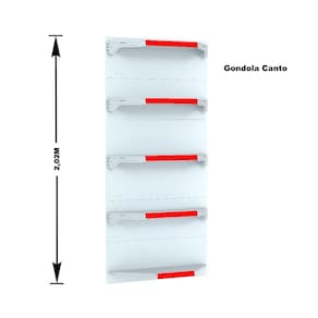 GONDOLA PAREDE 202 FIT AMAPÁ PARA VÃO DE ATÉ 2 METROS MAIS UM CANTO 40/30 BRANCO 15 BANDEJAS PORTA ETIQUETA VERMELHO