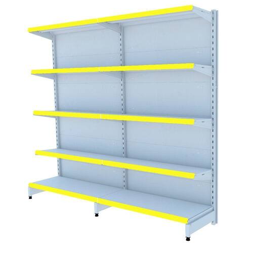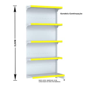 GÔNDOLA PAREDE 202 FIT AMAPÁ PARA VÃO DE ATÉ 2 METROS 40/30 BRANCO 10 BANDEJAS PORTA ETIQUETA AMARELO