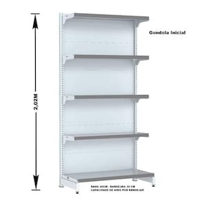 A fileira de Gôndolas deve ser iniciada com a Gôndola Inicial que possui 2 colunas. A Gôndola Continuação possui 1 coluna, utilizada para dar continuidade à fileira e não pode ser montada individualmente.