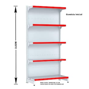GÔNDOLA PAREDE 202 FIT AMAPÁ PARA VÃO DE ATÉ 2 METROS 40/30 BRANCO 10 BANDEJAS PORTA ETIQUETA VERMELHO