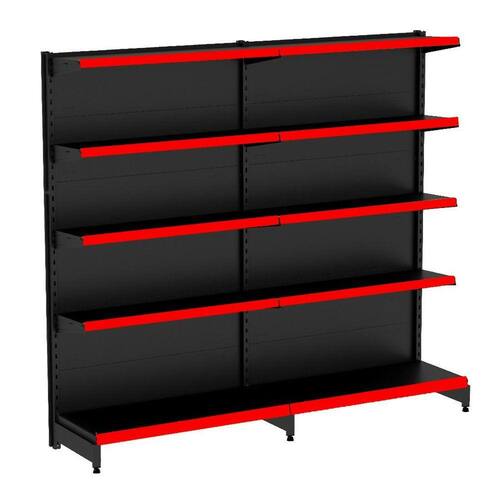 GÔNDOLA PAREDE 202 FIT AMAPÁ PARA VÃO DE ATÉ 2 METROS 40/30 PRETO 10 BANDEJAS PORTA ETIQUETA VERMELHO