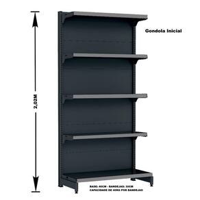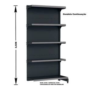 GONDOLA PAREDE 202 FIT AMAPÁ PARA VÃO DE ATÉ 3 METROS MAIS UM CANTO 40/30 PRETO 20 BANDEJAS PORTA ETIQUETA CINZA