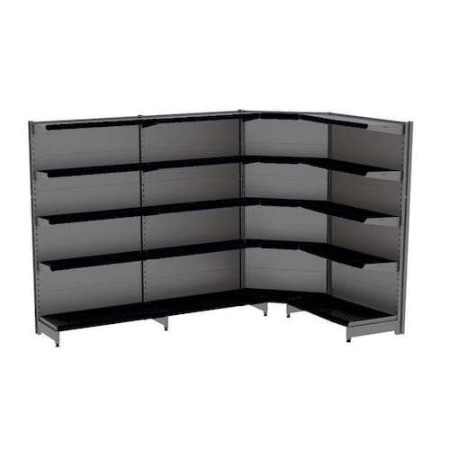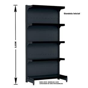 GONDOLA PAREDE 202 FIT AMAPÁ PARA VÃO DE ATÉ 3 METROS MAIS UM CANTO 40/30 PRETO 20 BANDEJAS PORTA ETIQUETA PRETO