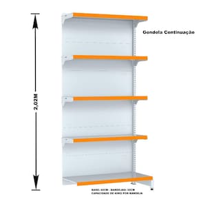 GÔNDOLA PAREDE 202 FIT AMAPÁ PARA VÃO DE ATÉ 3 METROS 40/30 BRANCO 15 BANDEJAS PORTA ETIQUETA LARANJA