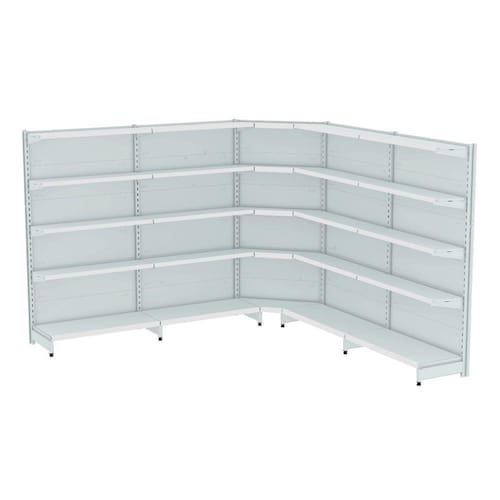 GONDOLA PAREDE 202 FIT AMAPÁ PARA VÃO DE ATÉ 4 METROS MAIS UM CANTO 40/30 BRANCO 25 BANDEJAS SPE (SEM PORTA ETIQUETA)