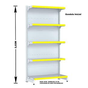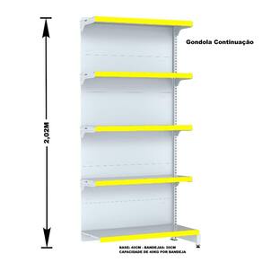 GÔNDOLA PAREDE 202 FIT AMAPÁ PARA VÃO DE ATÉ 4 METROS 40/30 BRANCO 20 BANDEJAS PORTA ETIQUETA AMARELO