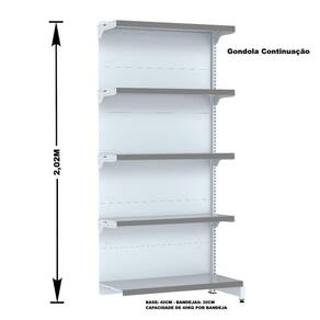 GÔNDOLA PAREDE 202 FIT AMAPÁ PARA VÃO DE ATÉ 4 METROS 40/30 BRANCO 20 BANDEJAS PORTA ETIQUETA CINZA