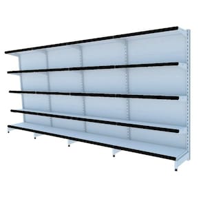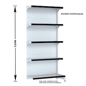 GÔNDOLA PAREDE 202 FIT AMAPÁ PARA VÃO DE ATÉ 4 METROS 40/30 BRANCO 20 BANDEJAS PORTA ETIQUETA PRETO
