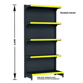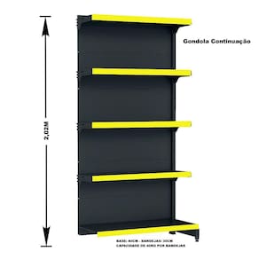 GONDOLA PAREDE 202 FIT AMAPÁ PARA VÃO DE ATÉ 5 METROS MAIS UM CANTO 40/30 PRETO 30 BANDEJAS PORTA ETIQUETA AMARELO
