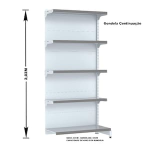 GÔNDOLA PAREDE 202 FIT AMAPÁ PARA VÃO DE ATÉ 5 METROS 40/30 BRANCO 25 BANDEJAS PORTA ETIQUETA CINZA