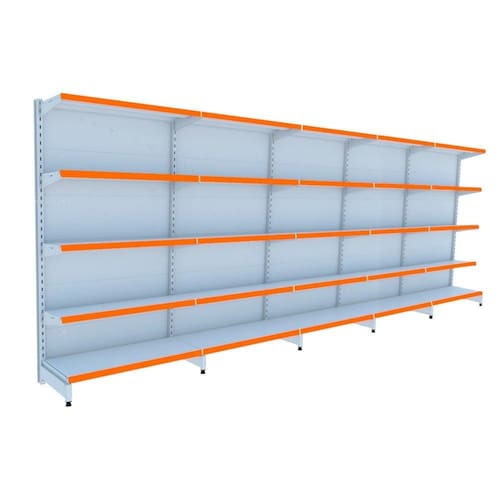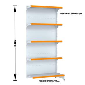 GÔNDOLA PAREDE 202 FIT AMAPÁ PARA VÃO DE ATÉ 5 METROS 40/30 BRANCO 25 BANDEJAS PORTA ETIQUETA LARANJA