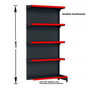 GÔNDOLA PAREDE 202 FIT AMAPÁ PARA VÃO DE ATÉ 5 METROS 40/30 PRETO 25 BANDEJAS PORTA ETIQUETA VERMELHO