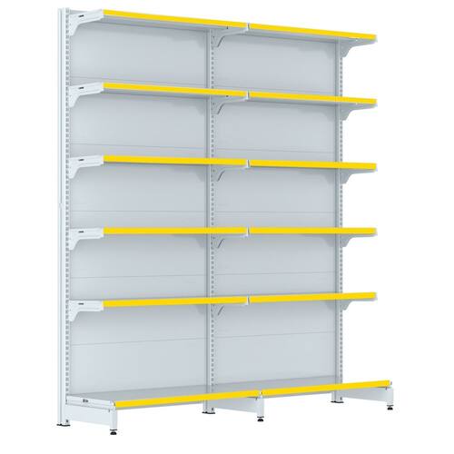 KIT GONDOLA PAREDE 202 CM FIT FARMÁCIA PARA VÃO DE ATÉ 2 METROS 30/25 BRANCO 12 BANDEJAS PORTA ETIQUETA AMARELO