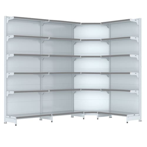 Instruções de Utilização: Para iniciar a montagem da fileira de gôndolas, é essencial utilizar a Gôndola Inicial, que conta com duas colunas. A sequência da estrutura é feita com a Gôndola Continuação, composta por uma coluna, projetada exclusivamente para a ampliação da fileira não podendo ser instalada isoladamente.