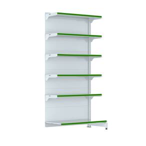 KIT GONDOLA PAREDE 202 CM FIT FARMÁCIA PARA VÃO DE ATÉ 3 METROS 30/25 BRANCO 18 BANDEJAS PORTA ETIQUETA VERDE