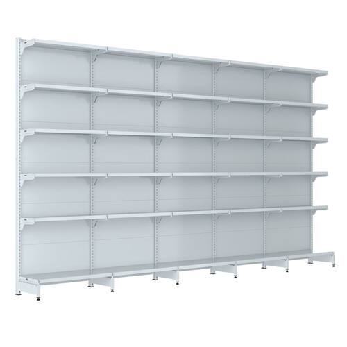 KIT GONDOLA PAREDE 202 CM FIT FARMÁCIA PARA VÃO DE ATÉ 5 METROS 30/25 BRANCO 30 BANDEJAS SPE (SEM PORTA ETIQUETA)