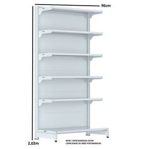 GONDOLA PAREDE 202 CM FIT FARMÁCIA INICIAL AMAPÁ 6 BANDEJAS 30/25 BRANCO SPE (SEM PORTA ETIQUETA)