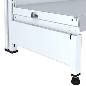 Prática e fácil de montar, conta com um sistema de encaixe que dispensa o uso de parafusos. Possui bandejas reguláveis, pés com ajuste de altura, colunas duplas e acabamento em pintura eletrostática epóxi.