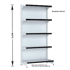 A fileira de Gôndolas deve ser iniciada com a Gôndola Inicial que possui 2 colunas. A Gôndola Continuação possui 1 coluna, utilizada para dar continuidade à fileira e não pode ser montada individualmente.